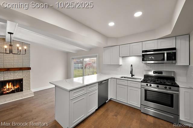 13386 Winona Dr13386 Winona Dr Sterling Heights, MI. 48312-1560 this beautifully renovated, move-in ready home has been transformed from top to bottom and is sure to impress even the most discerning buyer! From the moment you arrive, the impeccable curb appeal sets the tone for what awaits inside. Step through the front door into a bright living area filled with natural light and a cozy, inviting atmosphere that instantly makes you feel at home. The family room features a striking fireplace and soaring, beamed ceilings, with access to a newly poured concrete patio, an ideal space for entertaining and enjoying views of the extra-deep lot. Open to the family room is the beautifully renovated designer kitchen. Featuring soft-close custom cabinetry, sleek quartz countertops, and premium finishes throughout, this space is sure to offer an exceptional cooking experience. Every detail of this home has been thoughtfully updated, from the new flooring and modern lighting to the tastefully remodeled bathrooms with contemporary fixtures. The modernized lower level adds even more versatility with a brand-new kitchenette. Additional upgrades include a new roof, new driveway, and added attic insulation, providing comfort and peace of mind for years to come. Perfectly located near top-rated schools, parks, golf courses, and the m-59 corridor, this home combines style, comfort, and convenience. Schedule your private showing today and experience modern living at its finest. Agent is related to seller.More Information