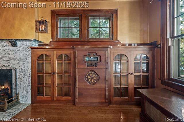 513 E Lincoln Ave513 E Lincoln Ave Royal Oak, MI. 48067-3301 this is a once-in-a-lifetime opportunity to own a once-in-a-lifetime home, ideally located one block from downtown royal oak and all of its cafes, shops, restaurants, green spaces, and quaint neighborhood atmosphere. for the first time in over 50 years, this exclusive, historic royal oak property is on the market: On the outside, a charming dutch colonial, and on the inside, a captivating classic that showcases timeless craftsmanship and enduring character. from the expanse of the original wood flooring, detailed coffered ceilings and trim, built-in cabinetry, marble fireplaces, the showpiece staircase, and old-world plaster, you are enveloped in the history of century-old craftsmanship and thoughtful design. upon entering, you will be stunned by original woodwork throughout. The formal living and dining spaces flow together beautifully, accented by a marble fireplace, antique radio, and vintage fixtures. The kitchen features an ornate tin ceiling, original floor-to-ceiling cabinetry, and a sunny breakfast nook with an original leaded glass china case. Throughout the home are secret closets, surprise panels, and unique built-ins, even in the basement, which includes a meticulously maintained art deco terrazzo floor. upstairs are vaulted hallway ceilings, five bedrooms, including a primary with coved plaster ceilings, and a wood-paneled study with a marble fireplace surround, built-in desk, and cedar closet tucked into the coffered walls. Most enchanting is the crafted shelving that serves as ship-ladder access to a beautifully finished two-room attic retreat. outside, discover a private yard with ornamental trees and a winding stone pathway leading to an outdoor space featuring a century-old stone wall with a working fireplace and chimney. Beyond the historic masonry is a sun-drenched plot ideal for gardening or peaceful enjoyment. this is a once-in-a-lifetime opportunity to own a once-in-a-lifetime home, one block from downtown royal oak and all its charm.More Information