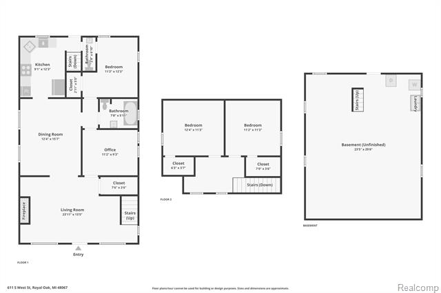 611 S West St611 S West St Royal Oak, MI. 48067-2540 prime location in the heart of royal oak! Located just off 11 mile and main street, walking distance from everything! This beautifully maintained 3-bedroom, 1.5-bath craftsman bungalow features an inviting enclosed front porch and a warm, inviting living room with a natural fireplace. The formal dining room flows into an updated kitchen with subway tile backsplash and stainless-steel appliances. A first-floor library or office—with full-length windows—can easily serve as a 4th bedroom. Convenient first-floor bedroom, plus two spacious bedrooms upstairs with a versatile common area perfect for additional living space. Central air and all appliances included. Offering warranty deed and title insurance.More Information